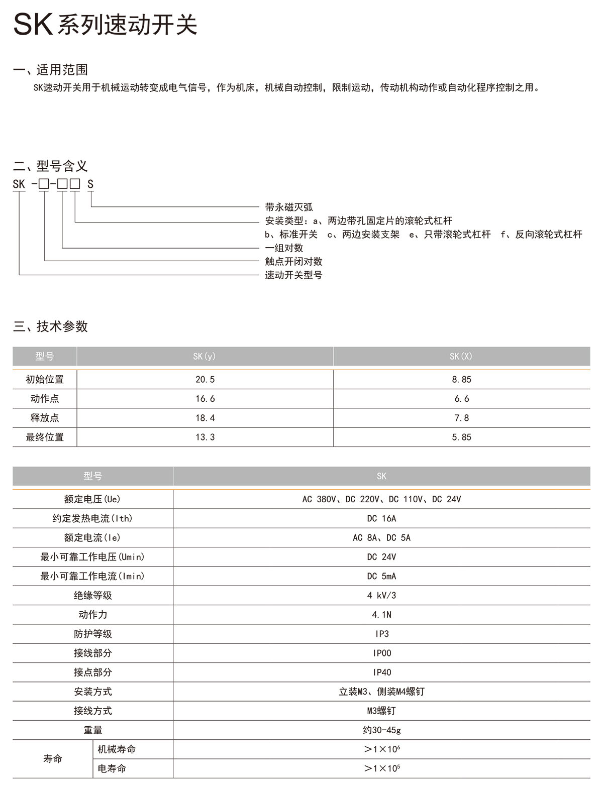 SK系列速動開關
