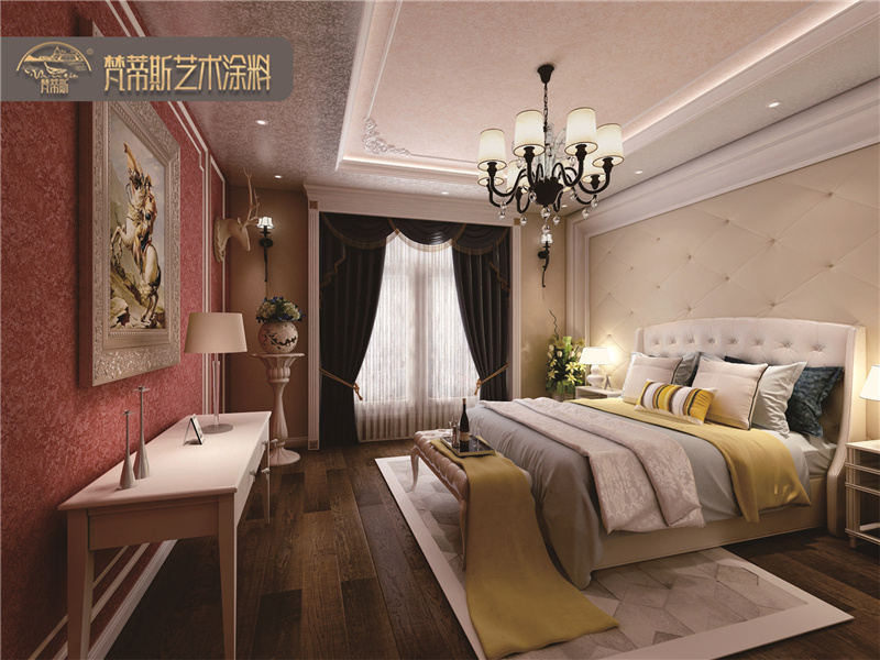 2、絲綢質(zhì)感。絲綢般的質(zhì)感打造浮光掠影的墻面效果,讓墻面如金緞流蘇般精致細膩。