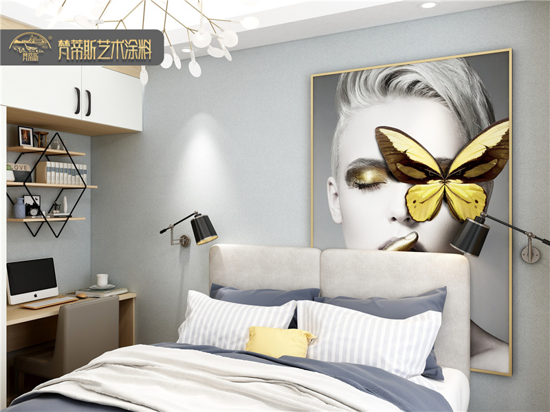 銀鉆砂絨采用德國先進工藝,導(dǎo)入納米分離技術(shù)而成,具有細(xì)砂觸感,絲絨的溫暖,柔和的珠光效果,突破傳統(tǒng)涂料單一色彩的局限性,華麗之中依稀著高貴,古典之下隱約著端莊,若隱若現(xiàn)的反光感和神秘感,讓絨面不會顯得枯燥和單調(diào),反而增添一些輕奢與優(yōu)雅,也許就是您家中所需的藝術(shù)乳膠漆。