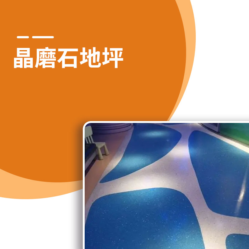 晶磨石地坪(水磨石)采用色彩繽紛的天然卵石、五彩石、大理石、貝殼、玉石等天然骨料,可廣泛用于商場、展廳走廊、高級娛樂場所、博覽會館、商務會所等其他一些需要美觀、耐磨地坪的場所。
