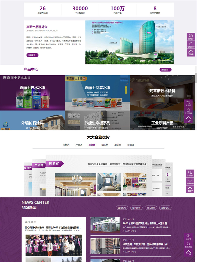 隨著市場(chǎng)需求的不斷升級(jí)及企業(yè)的逐步發(fā)展與壯大,為了匹配企業(yè)發(fā)展的戰(zhàn)略定位,更好地傳達(dá)企業(yè)理念與提升用戶體驗(yàn),嘉麗士水漆對(duì)官方網(wǎng)站進(jìn)行了全面的改版升級(jí)。經(jīng)過(guò)數(shù)月的謀劃籌備,全新的頁(yè)面設(shè)計(jì),豐富的內(nèi)容展示,更舒心、更便捷的訪問(wèn)體驗(yàn),有“顏值”更有“內(nèi)涵”的官方網(wǎng)站上線啦!