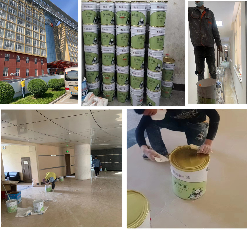牡丹區(qū)區(qū)人民政府辦公樓嘉麗士水漆施工中環(huán)保無味樓內(nèi)工作人員正常上班施工師傅涂刷施工兩不誤