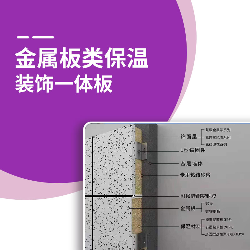 金屬板類保溫裝飾一體板是由鋁板或鍍鋅鋼板作為載體層,與保溫材料復(fù)合而成的集節(jié)能、裝飾為一體的裝飾板。